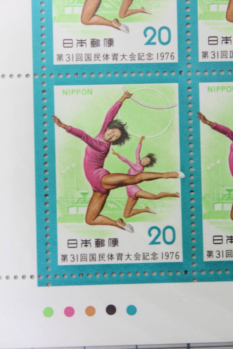 - 〇第31回国体「新体操と競技場」 未使用20円切手のシート1枚 1976年発行