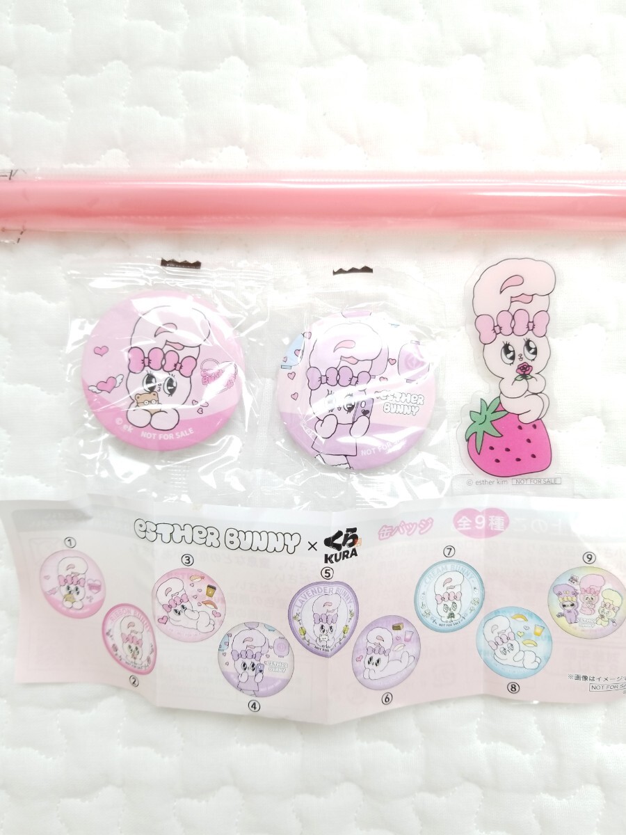 - ☆新品未開封くら寿司×エスターバニーコラボ限定缶バッジ&ハートストロー&チャーム4点セット/リボンバニー/ラベンダーバニー非売品☆