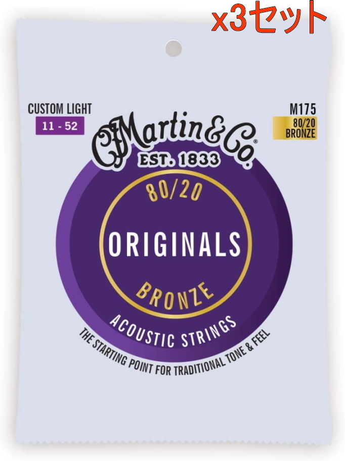 - x3セットMartin アコースティックギター弦 ACOUSTIC (80/20 Bronze) M-175 Custom Light .011-.052