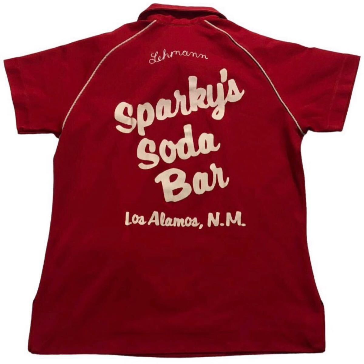- 送料無料 70s ヴィンテージ USA製 ■ King Louie キングルイ ■ バック プリント 半袖 ボーリング シャツ レッド 34