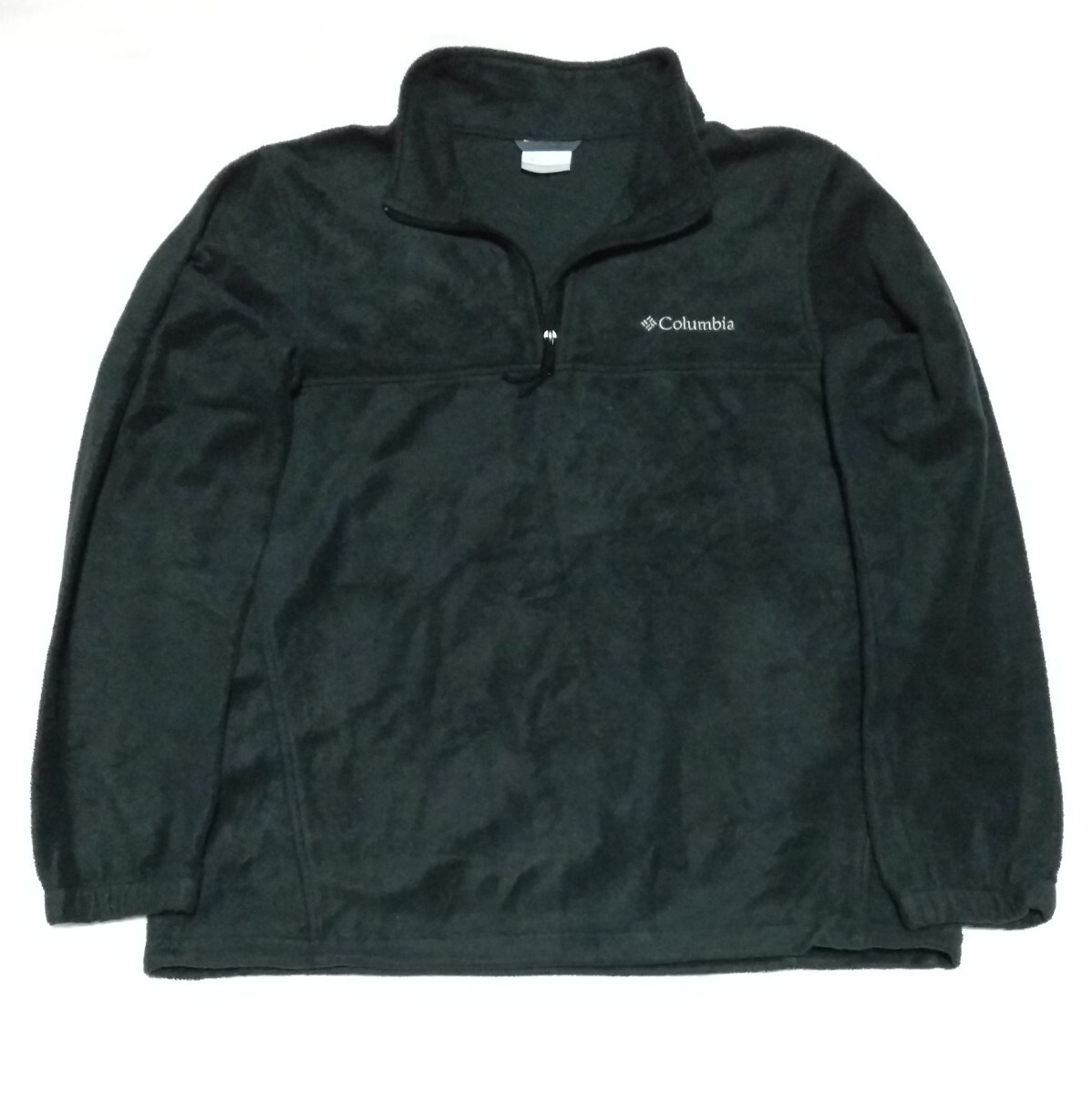 > ☆Columbia.com サイズL ハーフジップ黒ブラック刺繍GLAYグレイ フリース スポーツ アウトドア ファッション ウェア カンパニー コロンビア