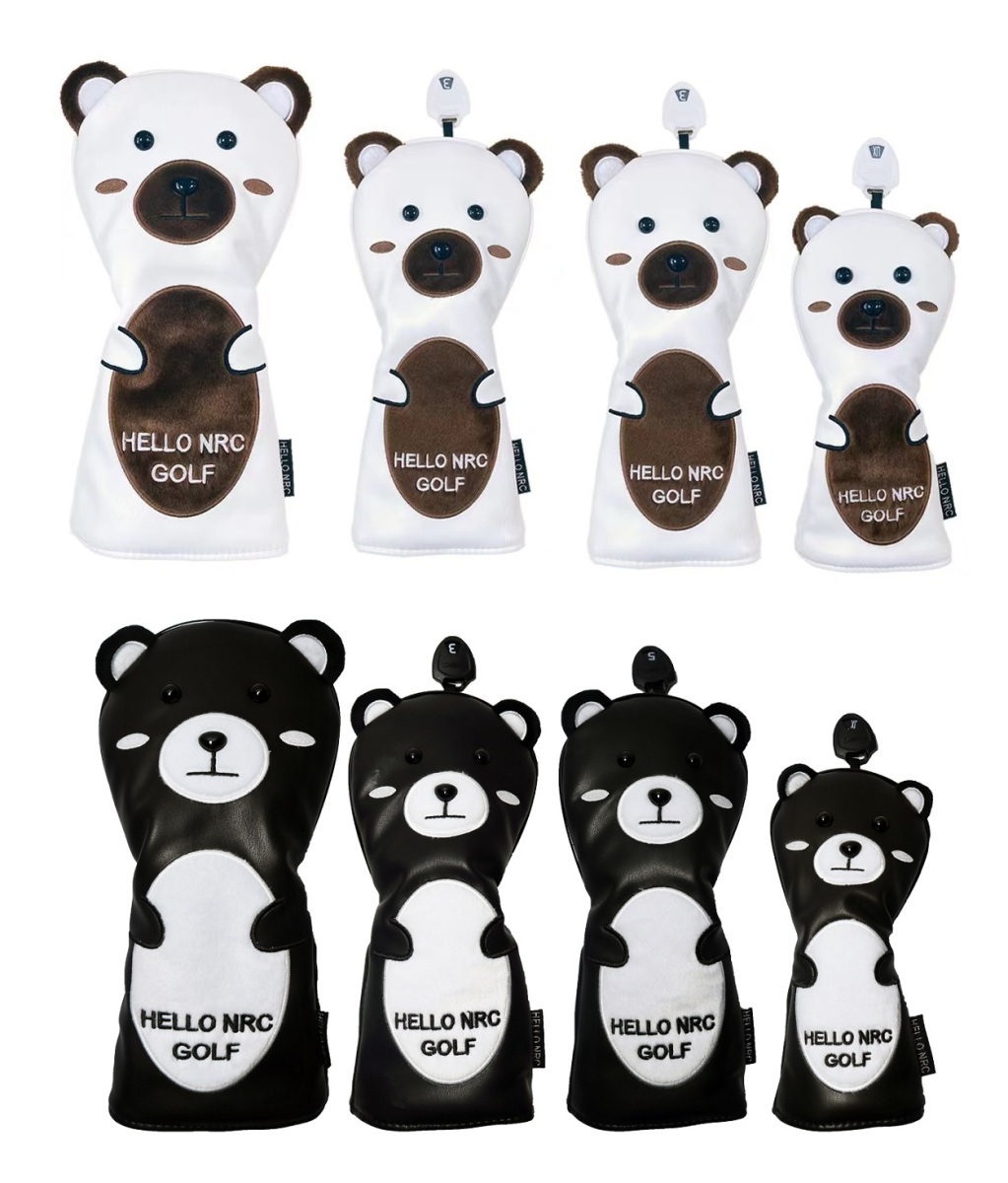 - ゴルフ ヘッドカバー ドライバー 440cc 460cc 用 カバー ウッド カバー ユーティリティ UT カバー 4点セット 防水仕様 黒熊 白熊 クマ