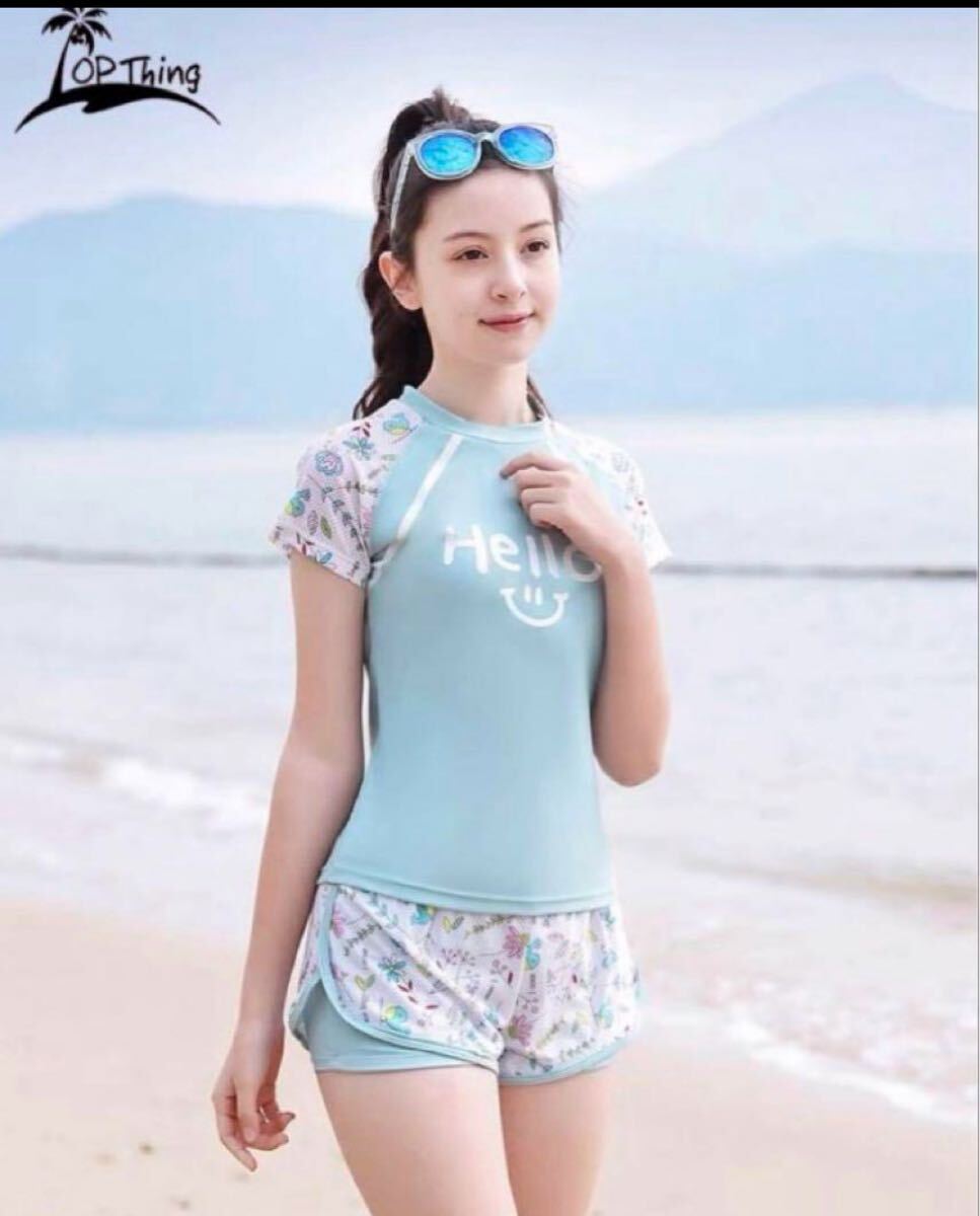 - 新品未使用ティーン 水着 2点セット セパレート 半袖 ラッシュガード 短パン ピンク