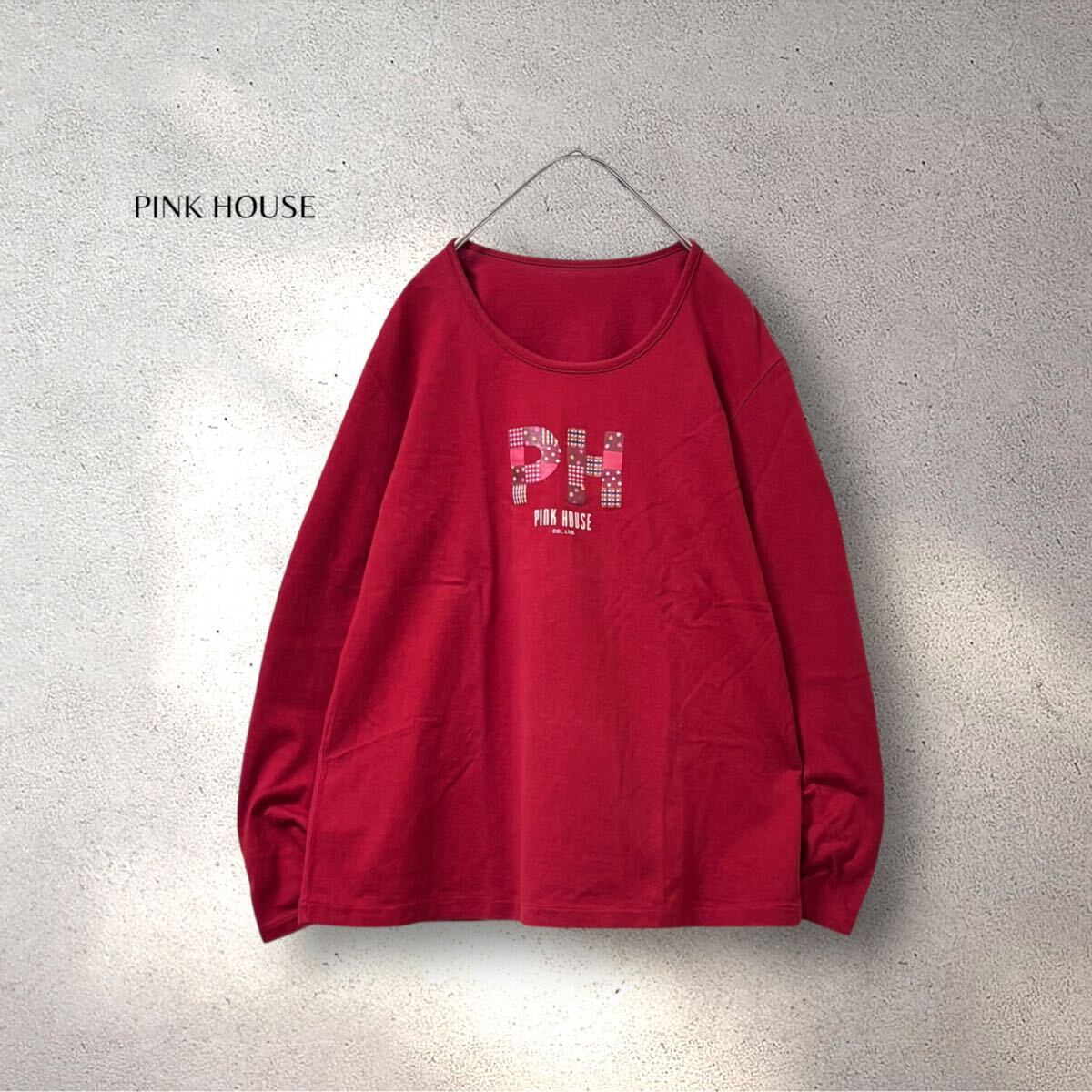 - 1720【PINK HOUSE/ピンクハウス】パッチワークロゴ プリント ロンT ヴィンテージ カットソー 長袖 トップス カネコイサオ 80年代 古着