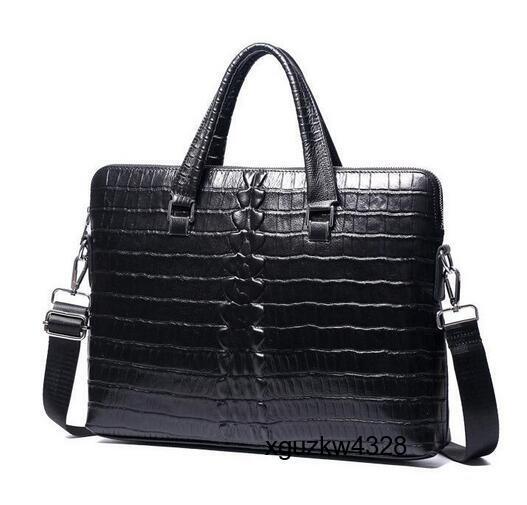 - 牛革 本革 14インチ クロコダイル型押し メンズバッグ ビジネスバッグ ノートパソコン ブリーフケース A4 レザー 通勤鞄 手提げバッグ 黒
