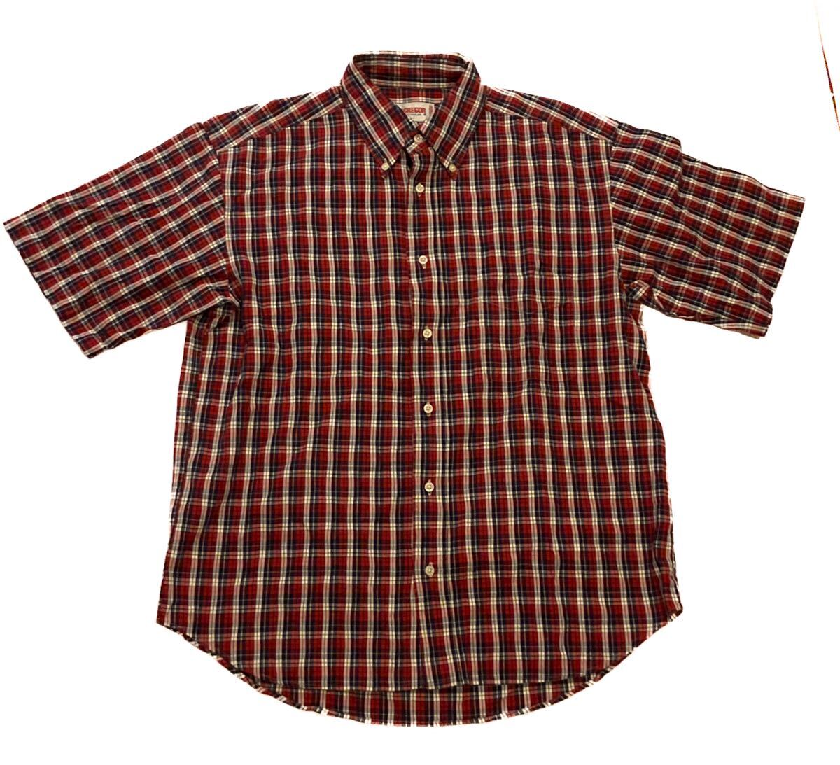 - 日本製 マックレガー ビンテージ チェック柄 シャツ 半袖 半袖シャツ ボタンダウン レッド Lサイズ