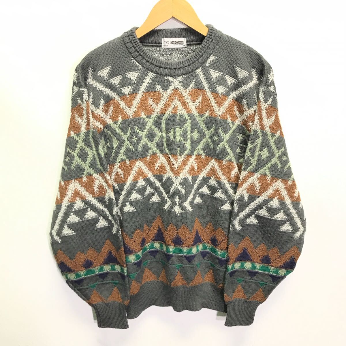 > 日本製◎上質な1着◎【Del-Conte】デルコンテ クルーネックセーター トップス ニット 80s 90s レトロ 古着 ビンテージ グレー M /Y29008ii
