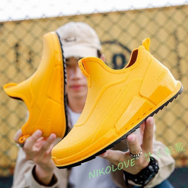 - 新品 レインシューズ レインブーツ メンズ 雨靴 歩きやすい 防水 サイドゴア スニーカー おしゃれ 防滑 梅雨対策 エナメル イエロー 26.5cm