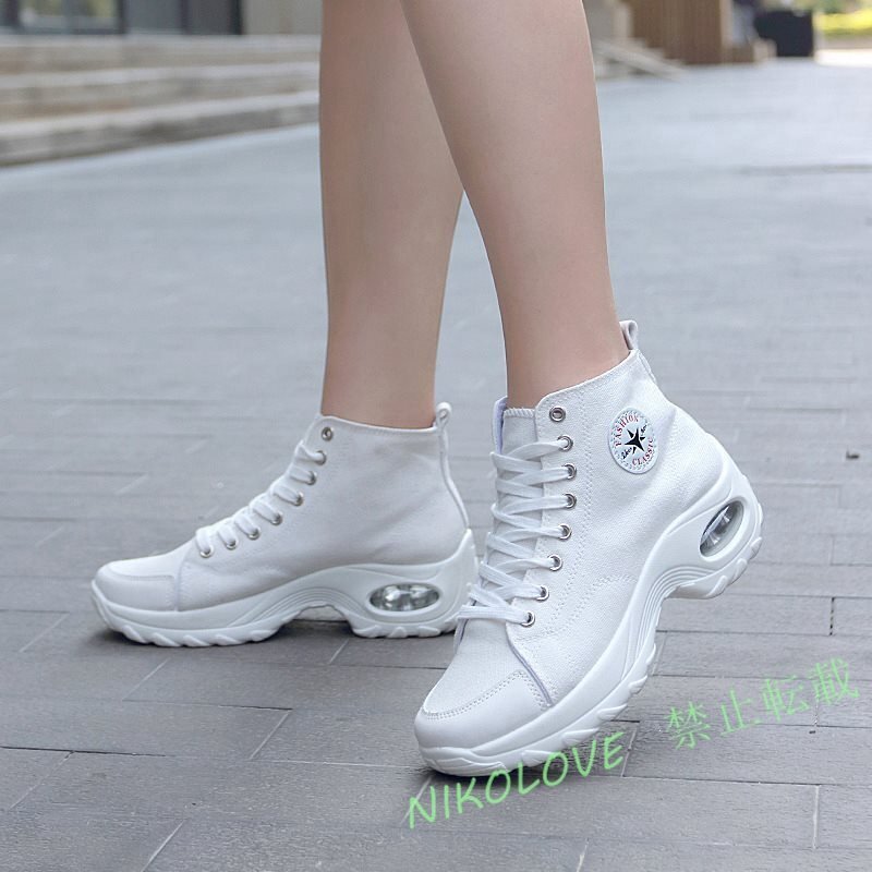 - 新品 レディース カジュアル スニーカー キャンバス 厚底 防滑 柔らか 学生お色選択可 ホワイト