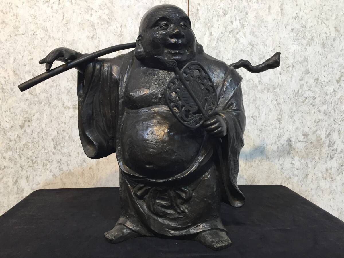 > 『 布袋様立像 』 布袋天 布袋様 七福神 縁起物 般若純一郎? 高岡銅器 ディスプレイ アンティーク レトロ ★古時家★