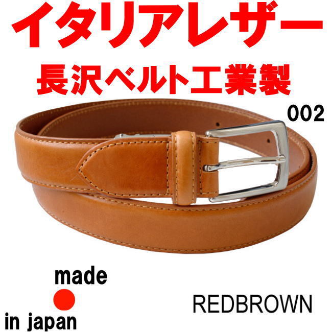 - レッドブラウン 長沢ベルト工業製 イタリアレザー 002 ビジネス ベルト 日本製