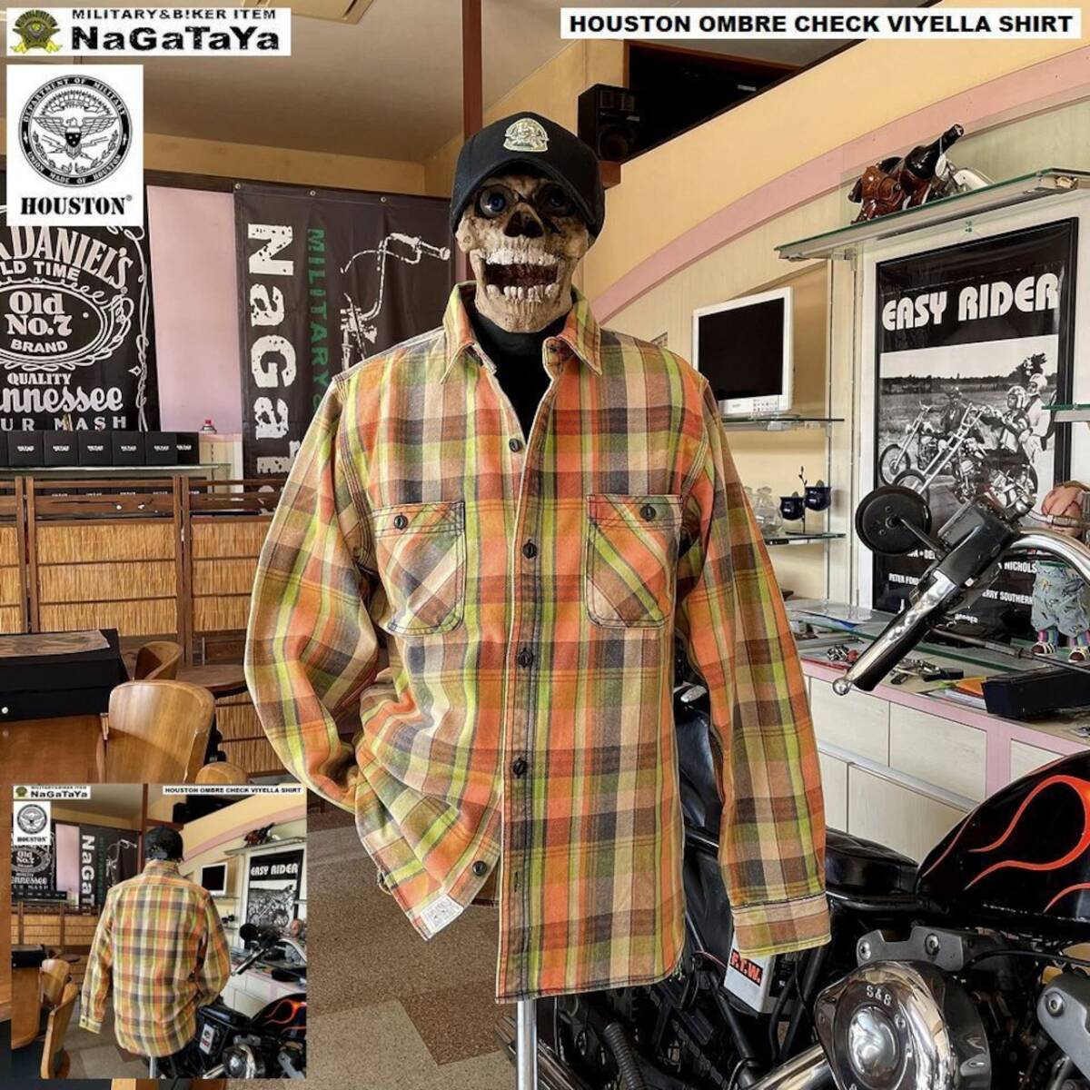 - HOUSTON ヒューストン オンブレチェック ビエラシャツ OMBRE CHECK VIYELLA SHIRT 41049 オレンジ Lサイズ フランネルシャツ ワークシャツ