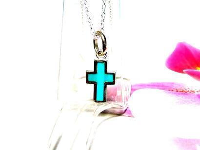 - 小さな可愛いターコイズストーンのクロス・シルバーネックレス