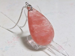 - チェリークオーツのピンクの大きな可愛い雫のシルバーペンダント