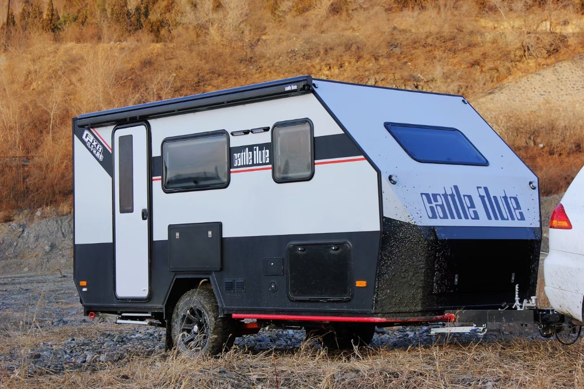 - キャンピングカー サイドオーニング 2.5m 黒 強化アルミ 防風対策 関東取り付け対応可 工賃別 工場直売
