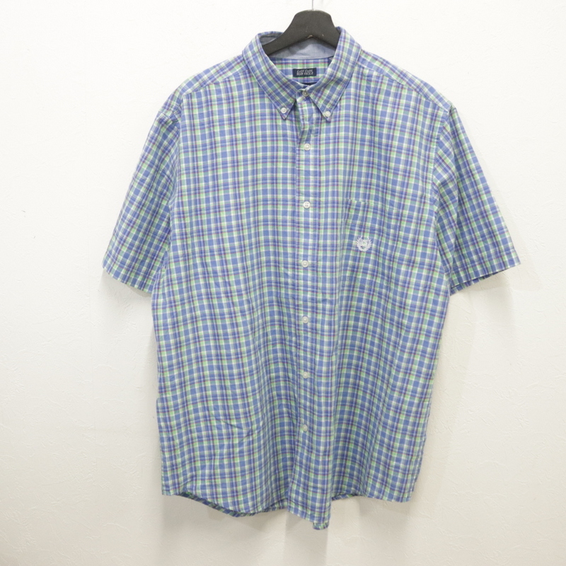 > j503 2000年代製 チャップス 半袖シャツ■00s 表記XLサイズ ブルー チェック ボタンダウン 刺繍 アメカジ ストリート 古着 激安 古着御 90s