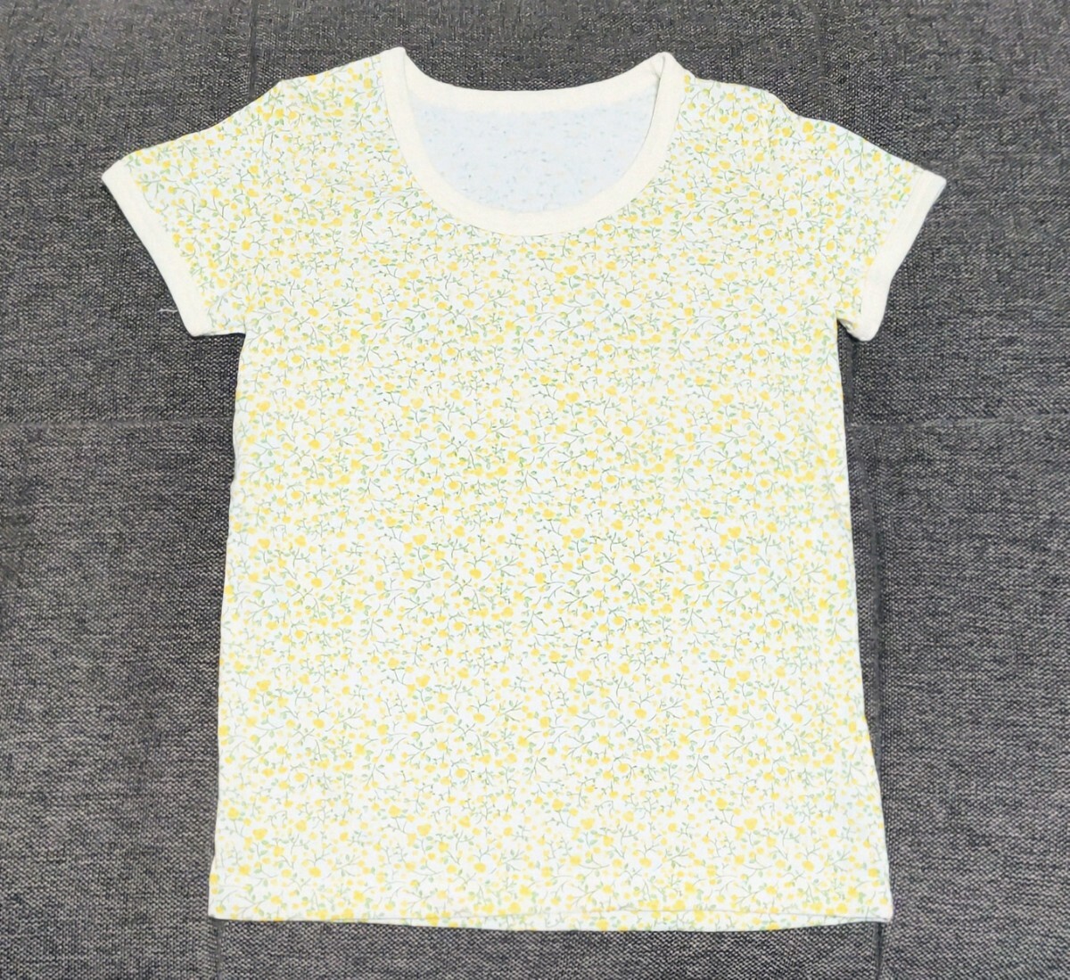 - 新品同様☆ 着用1回 吸水速乾 半袖 シャツ 白に黄色の小花柄 110