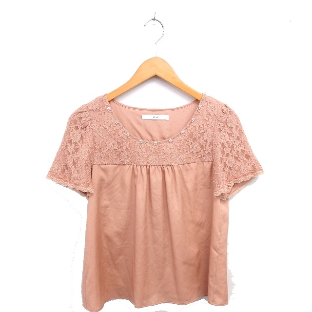 - エフデ ef-de カットソー ブラウス ボートネック レース ビーズ装飾 半袖 9 ベージュ 茶 /TT レディース