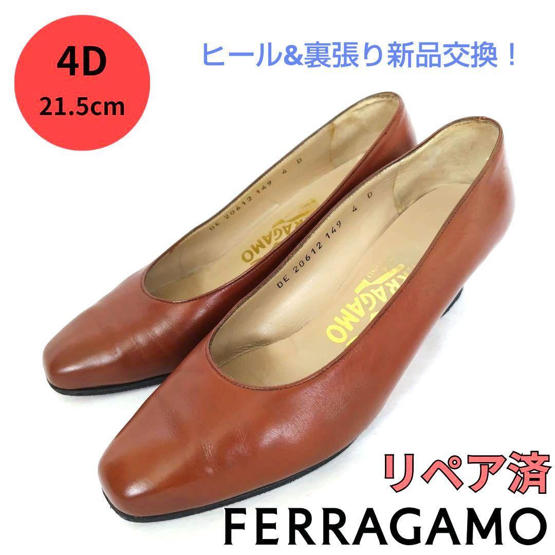 - S 小さいサイズ☆良品Ferragamo【フェラガモ】プレーン パンプス 茶色