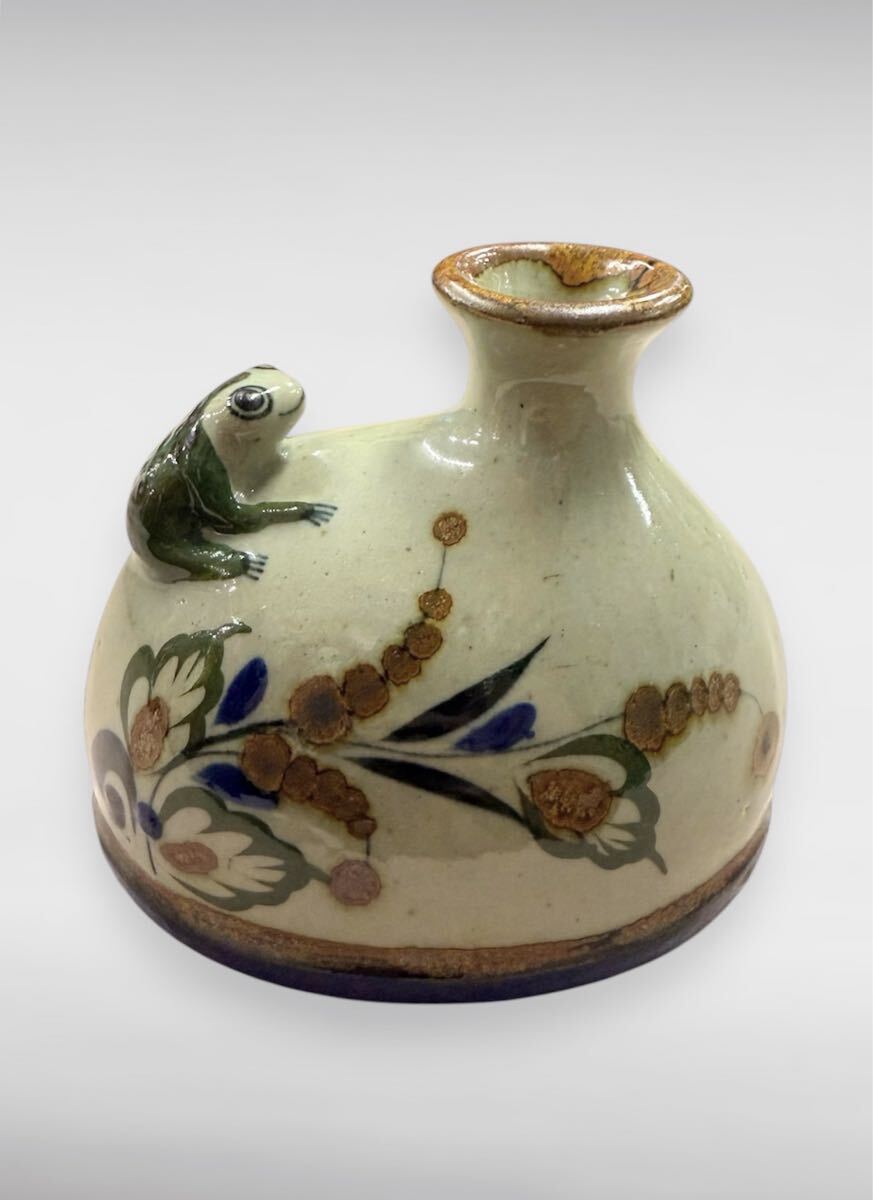 - 【NEOJI】メキシコ トナラ焼き カエル付き絵付け花瓶、フラワーベース