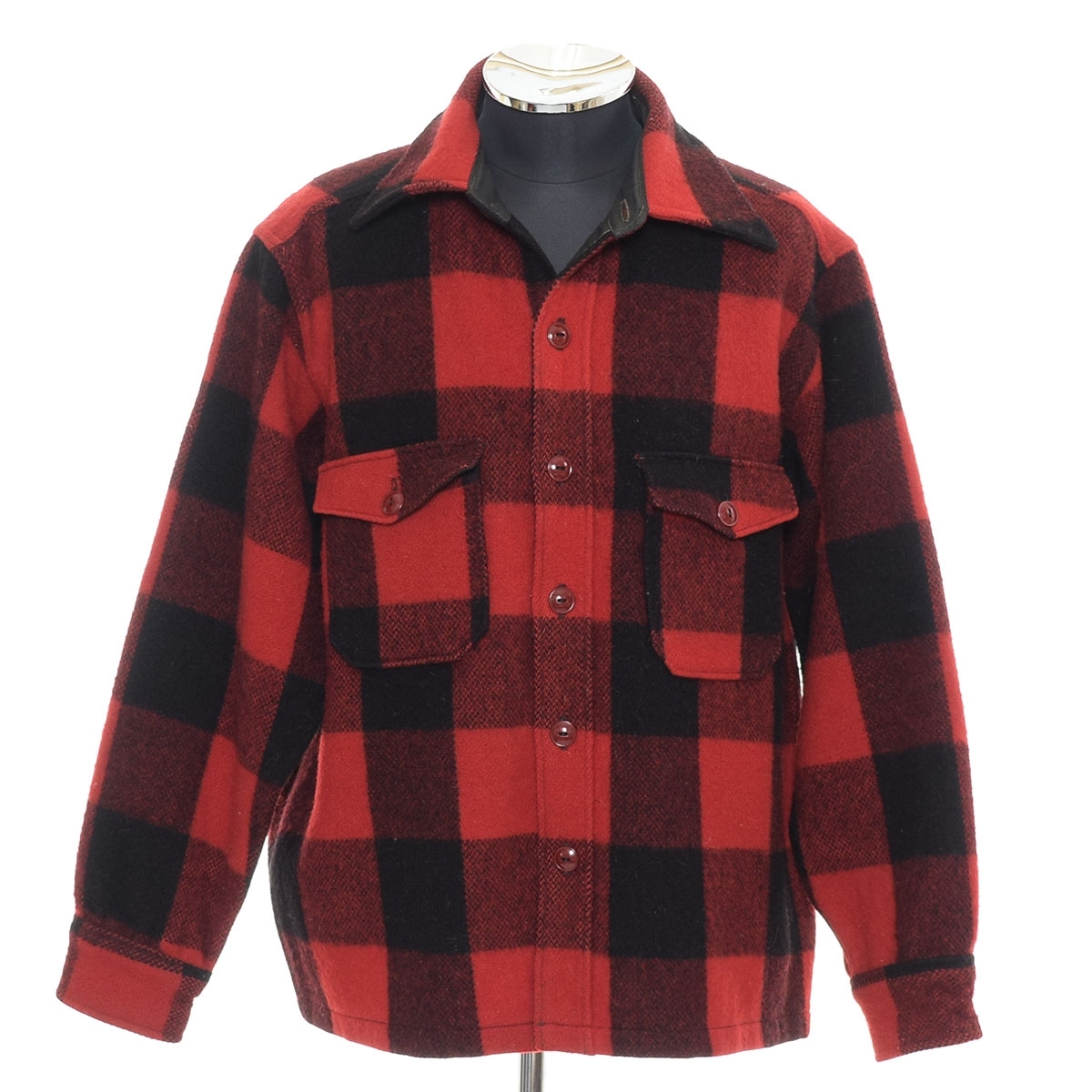> ●545461 MONTGOMERY WARD WESTERN FIELD ●ウールシャツジャケット 60s ヴィンテージ バッファローチェック サイズL メンズ USA製 レッド