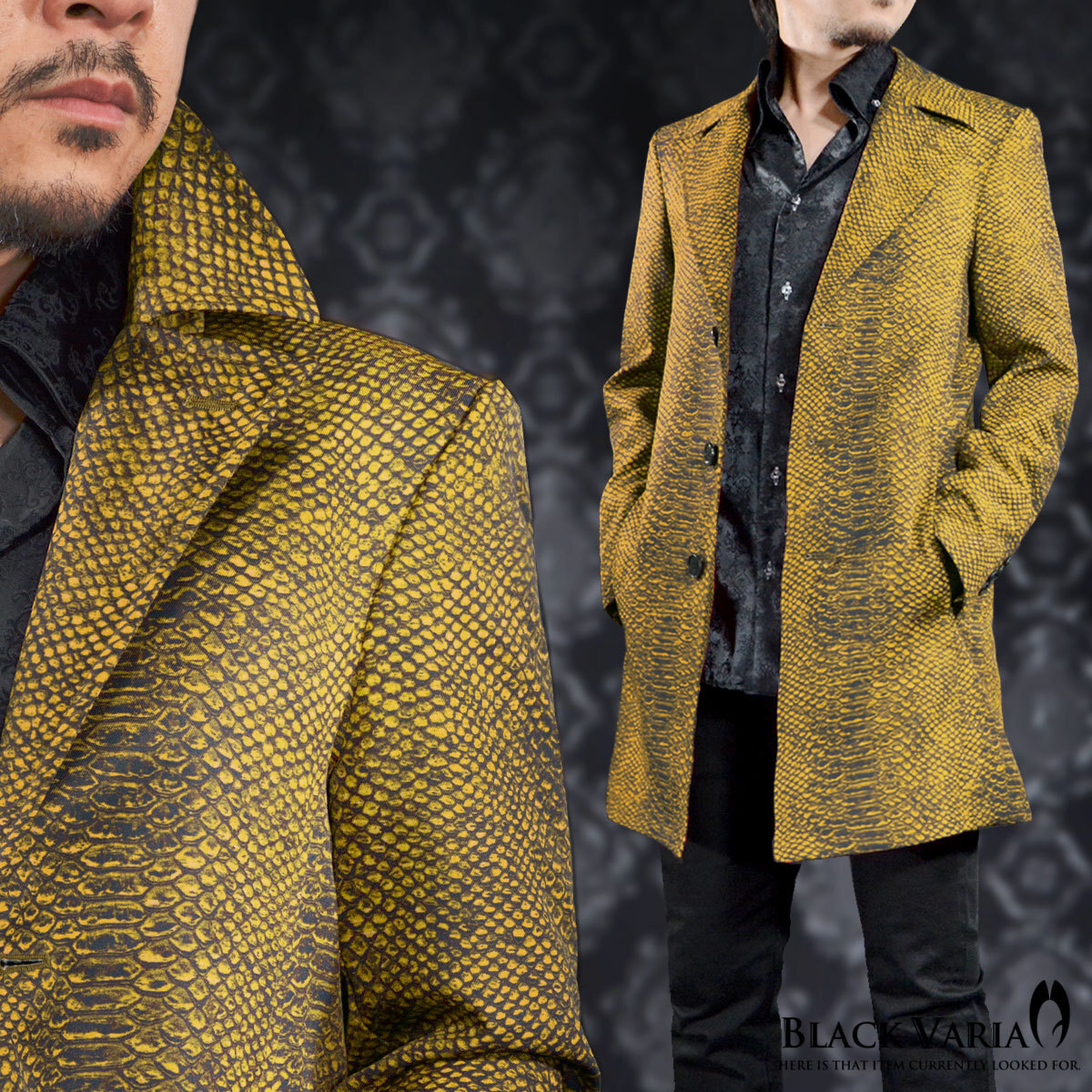 > 172758-go [SALE] ブラックバリア 軽量チェスターコート ヘビ柄 クロコ 3釦テーラード ソフト ロング メンズ(ゴールド金イエロー黄) M