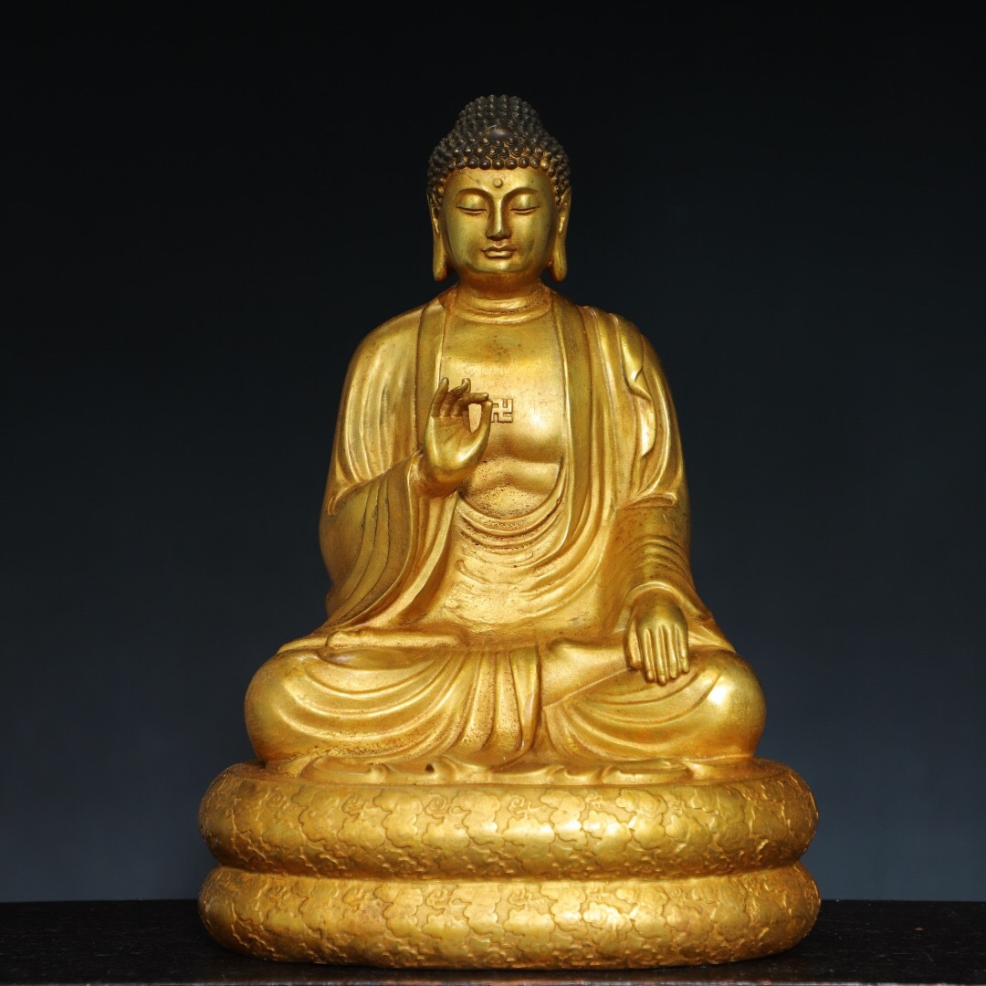 - ▽鴻▽ 銅製 塗金 大日如來像 仏教古美術 供養品 古賞物 中国古玩 中国古美術
