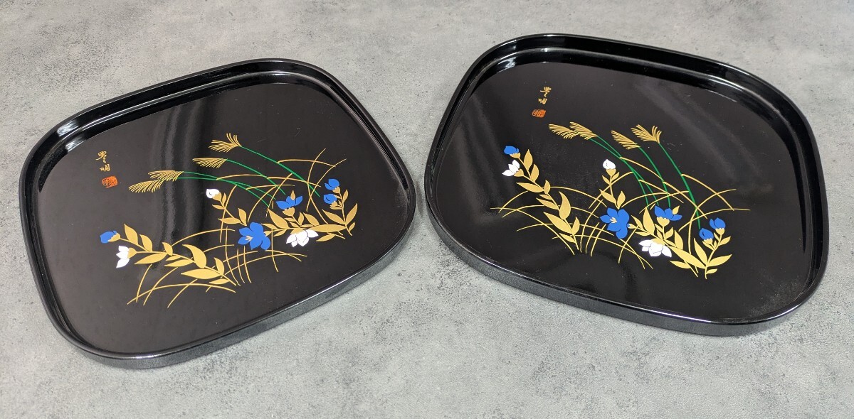 - お盆 黒 大小2個セット トレー スクエア 伝統工芸