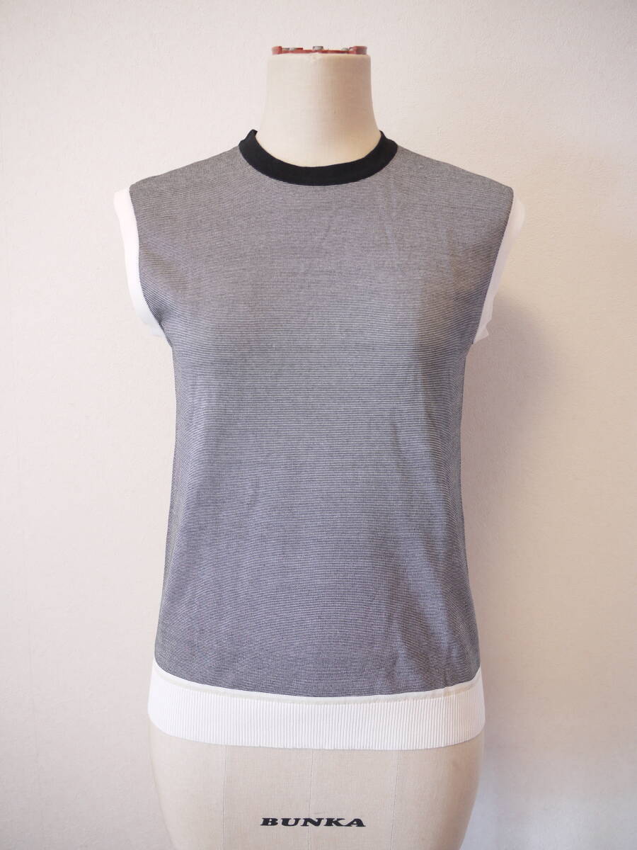 - WELLNESS ウェルネス ノースリーブニット 黒×白 クリーニング済