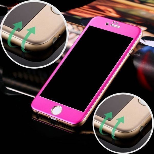 > 2枚入り マゼンタ iPhone6S Plus / iPhone6 Plus アルミ チタン 液晶 画面 保護 頑丈 耐衝撃 ガラス フィルム カバー シール シート 9H