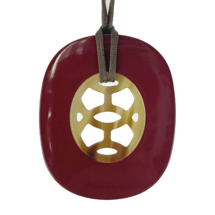 - 超美品 エルメス ネックレス リフトGM ボルドー系 ブラウン系 バッファローホーン ラッカー ペンダント【本物保証】