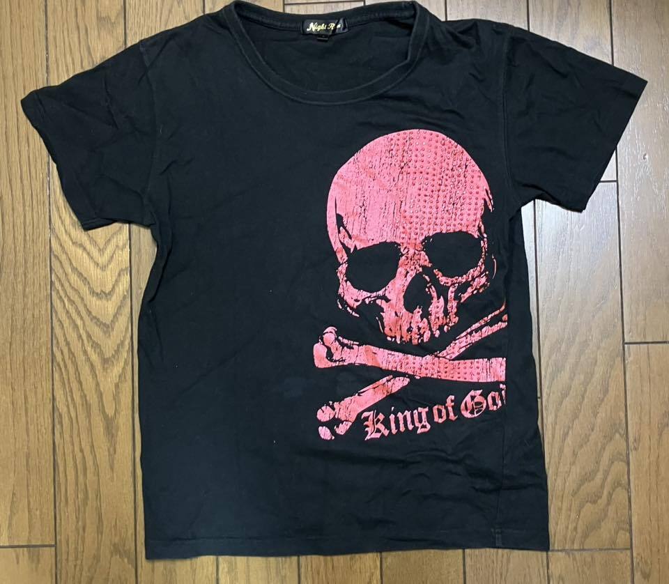 > NIGHT RIDER スカル プリント スパンコール Tシャツ(レディースLサイズ)