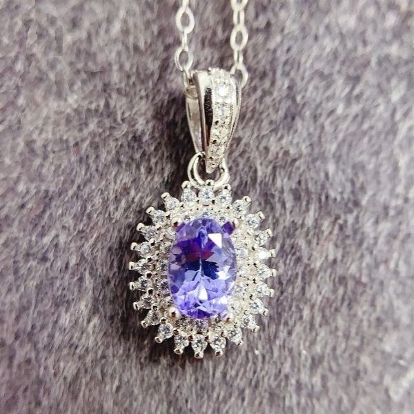 > 最初の入札者様は開始価格で購入できます。鑑別付き、ナチュラルタンザナイトペンダントネックレス、4x6mm、925シルバー_Yu