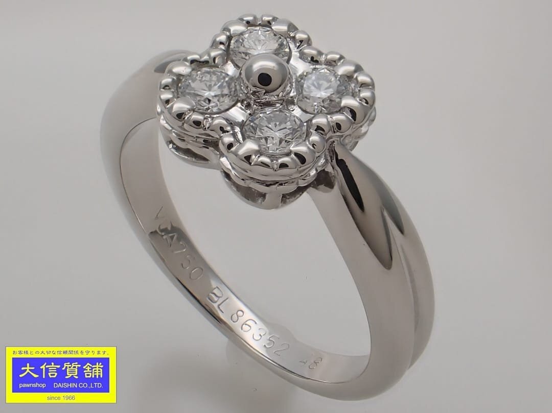 > Van Cleef & Arpels VCA ヴァンクリーフアーペル 750 WG ホワイトゴールド ダイヤリング 4P 48 4.08g 中古A+ 【送料無料】 C-9382