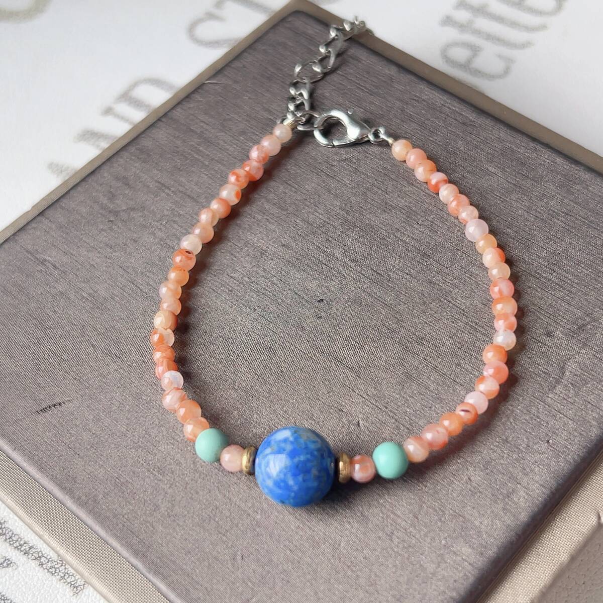 > ◇マグネサイト+ラピスラズリ+瑪瑙◇メノウ◇アゲート◇ブレスレット◇パワーストーン◇天然石◇巾着袋付き◇プレゼントにも030B4175