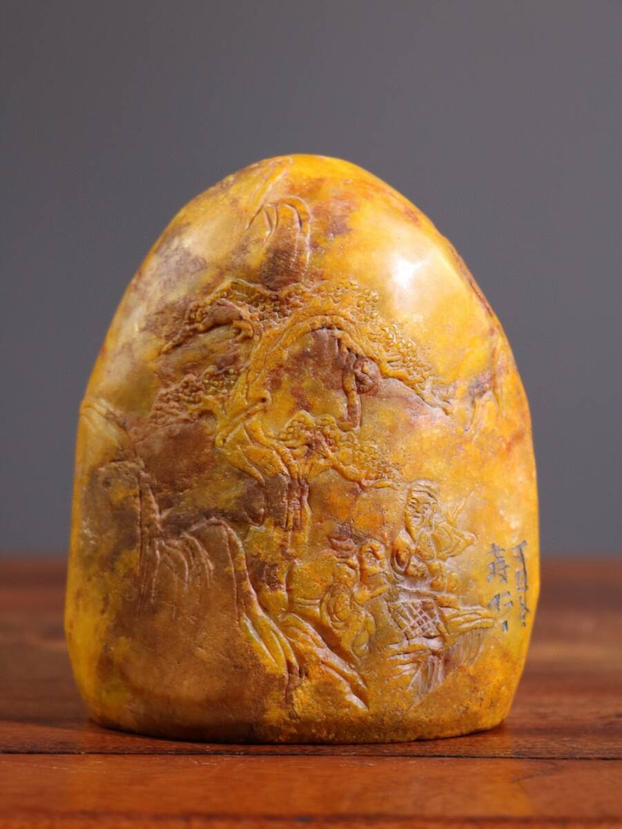 - 【超珍館蔵】寿山石 田黄石 細密彫 松下輪道紋印章 文房具 書道品 古賞物 古美術品 稀少珍蔵品