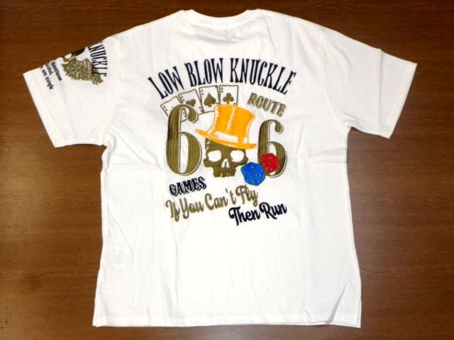 > LOW BLOW KNUCKLE Tシャツ デッドオアアライブ/白Lサイズ/ロー ブロー ナックル 554364 フライング スカル/総刺繍 新品 半袖Tシャツ 髑髏