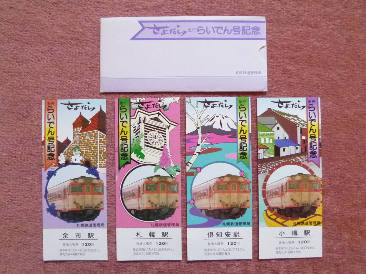- さよなら急行らいでん号記念入場券4枚組(国鉄/札幌鉄道管理局/昭和59年1月31日廃止/札幌/小樽/余市/倶知安/日本国有鉄道/函館本線/気動車)