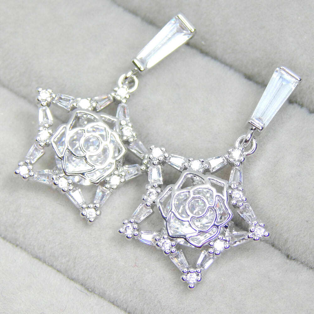 > 新品★送料無料 星&薔薇デザインピアス レディース シルバー925 CZダイヤモンド キュービックジルコニア イヤリング化可 プラチナ仕上