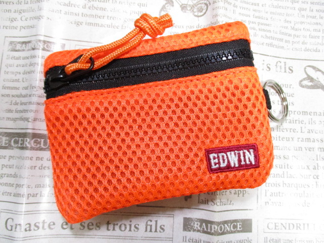 - 格安 新品 財布 レディース エドウィン EDWIN 二つ折り ミニ財布 小銭入れ コインケース カラフルメッシュデザイン オレンジ