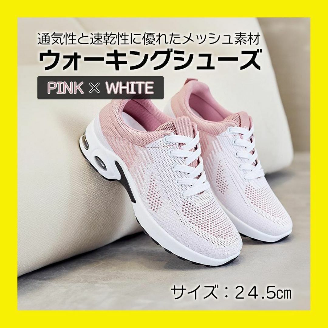 - 24.5 ピンク スニーカー ランニングシューズ メッシュスニーカー 運動靴 靴 黒 白 ウォーキング ランニング シューズ レディース