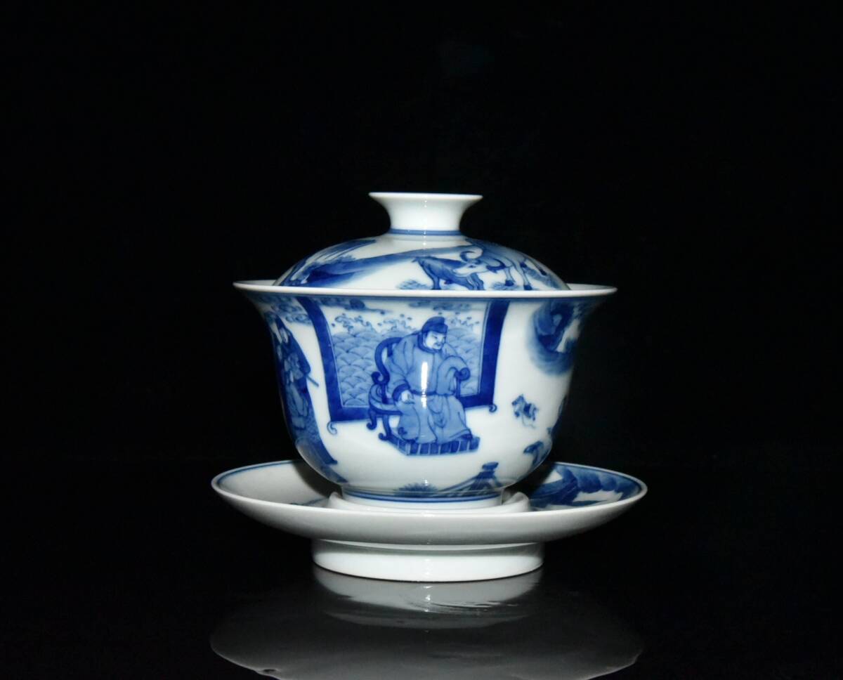 - ▽鴻▽ 清 康熙年製款 青花 人物故事紋 茶盞 古陶瓷品 置物 古賞物 中国古玩 中国古美術