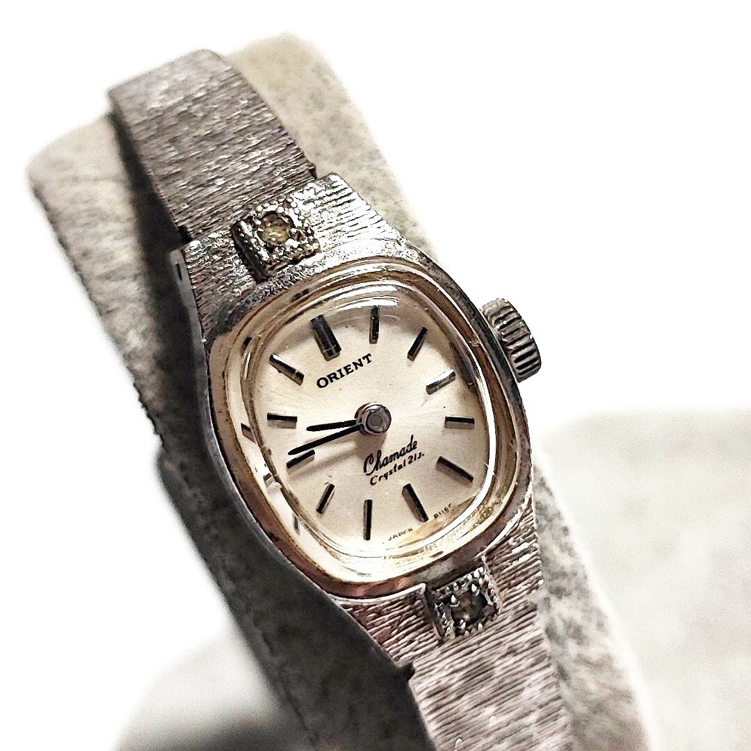 - 動作品 石付き ORIENT 宝石宝飾ストーン レディース腕時計 昭和レトロ 機械式 手巻き 稼働品 o112