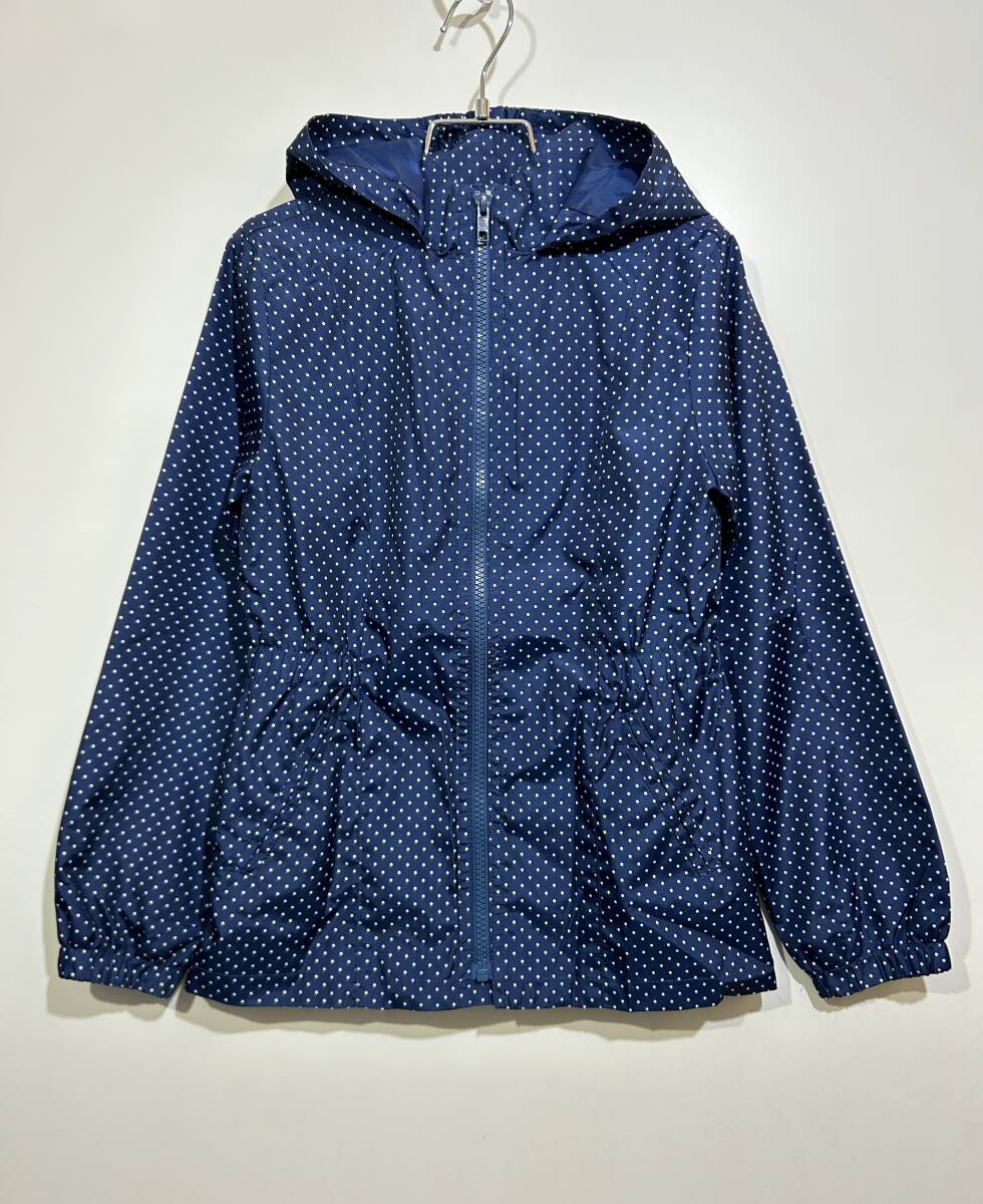 - ● GAP kids キッズ ドッド柄 ジャンパー ネイビー M 130 ライトブルゾン ウィンドブレーカー 水玉 くびれ フーディー ライトアウター