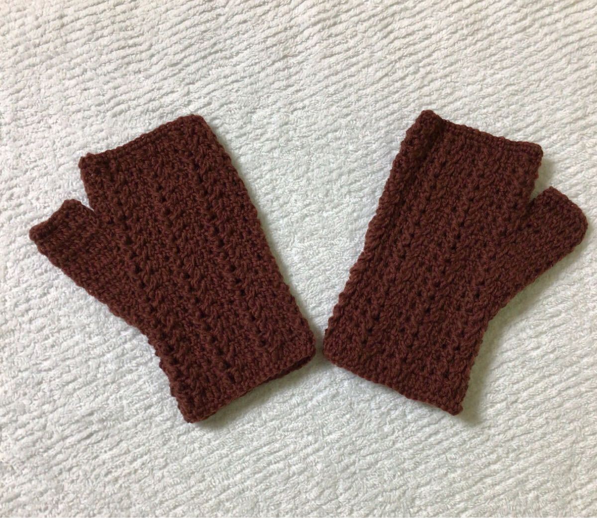 - 【編ハ-7】手編みのハンドウォーマー 指先なしのミトンタイプ スマホ、パソコン操作、読書等作業がしやすく便利♪ 左右どちらでもOK!