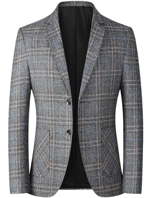 - 新入荷 春秋 チェック柄 テーラードジャケット メンズ ブレザー 紳士 ハンサム スリム カジュアル グレー/2XL