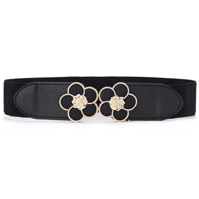 - 【ブラック】約4cm【花柄 ゴムベルト】レディース ゴムベルト ゴールド 金