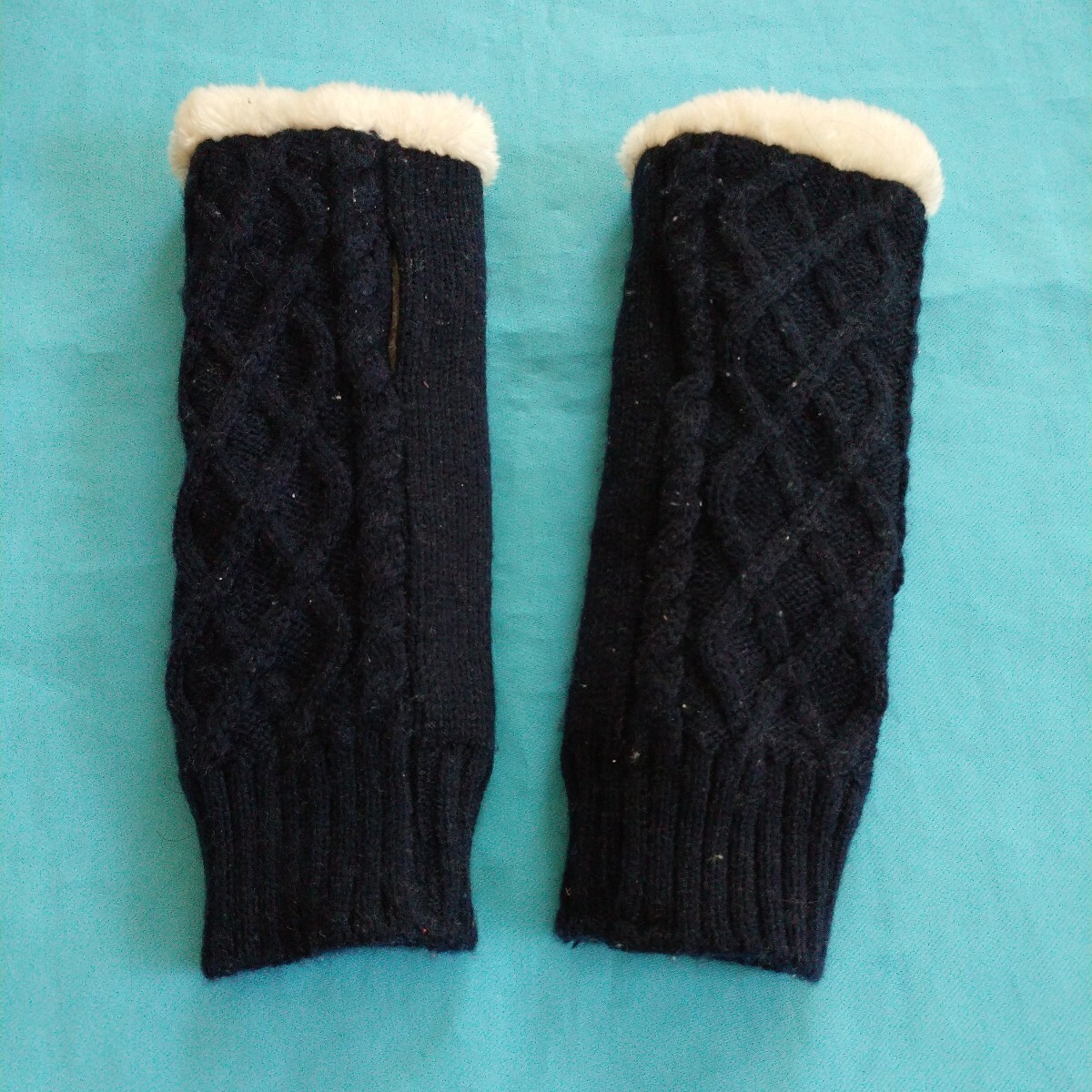 - 即決!ハンドウォーマー 手袋 グローブニット風ネイビー紺色アームカバー