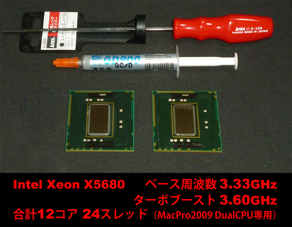 - 【MacPro最強最速化計画NO.3 CPU】2009デュアルプロセッサー専用CPU XeonX5680×2基(3.33-tb3.60GHz/12MB/6.4GT/メモリ1333MHz)動作確認済