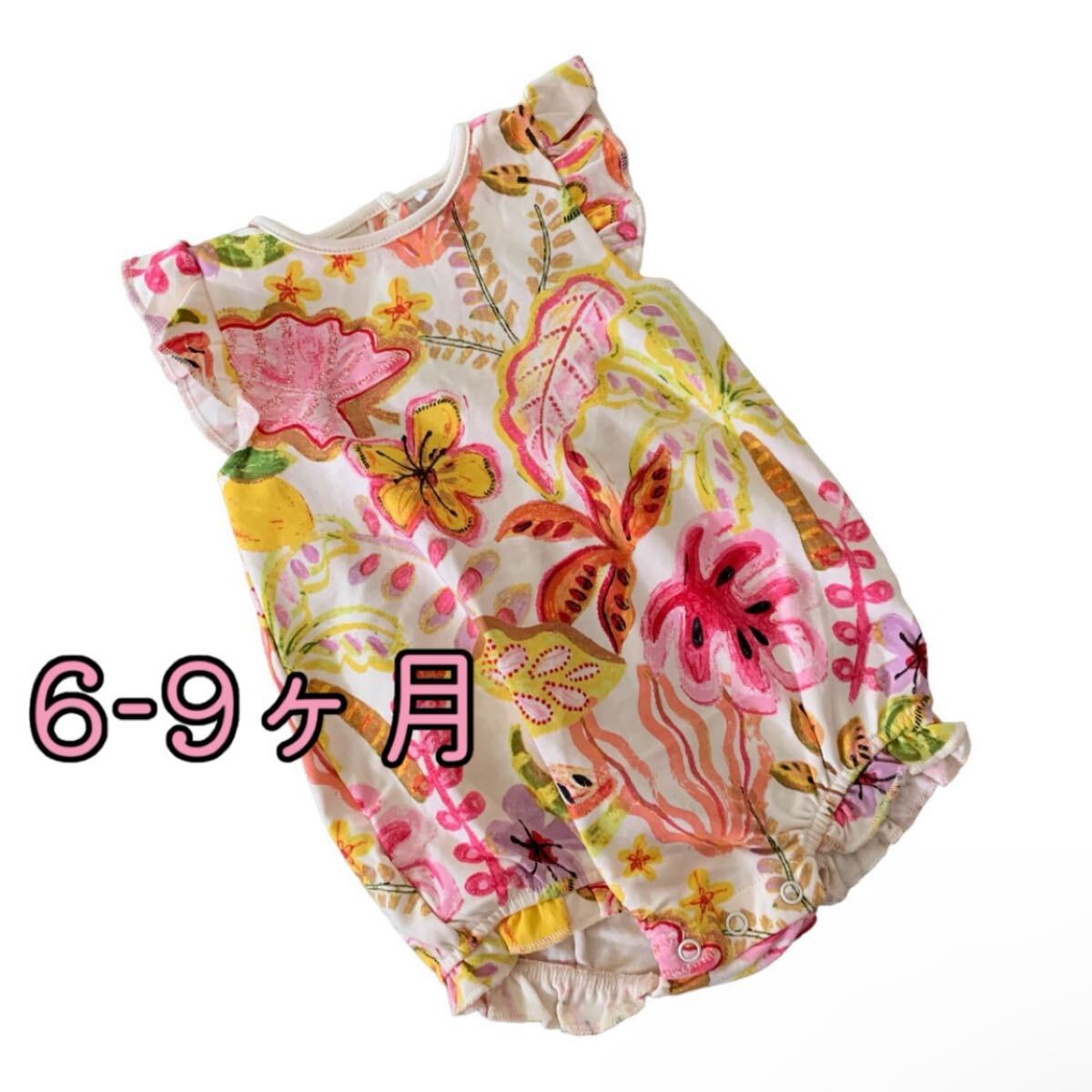 - ●未使用6-9ヶ月 トロピカル柄 ノースリーブ ロンパース